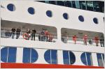 Dann kam sie - die Hurtigrute. Diesmal war das Motorschiff Trollfjord an der Reihe, das 2002 gebaut wurde. Auch hier musste das grosse Schiff im Hafen praktisch an Ort wenden, was der Kapitän hervorragend erledigte. Dann stiegen alle diejenigen aus, die den Landausflug gebucht hatten, d.h. eine Busfahrt nach Mehamn.