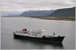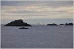 Und dann kam sie, die Hurtigrute. Das Schiff hatte also die Passage von Stokmarknes durch den engen Raftsund und in den noch engeren Trollfjord unfallfrei geschafft.