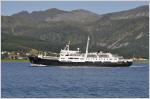 In Risøyhamn stiess ich auf das Schiff der Hurtigrute, das auf seiner Fahrt in den Süden kurz Halt machte. Es kam das antike Motorschiff Lofoten, das ich vor elt Tagen schon beim Anlegen in Stokmarknes sah. Es reichte mir gerade noch, auf die grosse Brücke zu gehen und das Schiff von leicht erhöhter Position aufzunehmen.