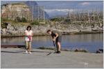 Während ich auf die Ankunft der Hurtigrute wartete, hatte ich Gelegenheit, die Leute ringsherum zu studieren. Da war zum Beispiel die deutsche Familie aus Halle mit dem Wohnmobil direkt neben dem Hotel. Die Tochter döste auf dem Liegestuhl neben dem Wohnmobil, während Vater und Mutter krampfhaft das Nachtessen aus dem Hafenbecken fischen wollten. Nach langer Zeit war dann endlich was an der Leine. Sie stellten das Fischen dann ein und teilten sich wohl zu dritt dieses Fischlein. So behält man die Linie!