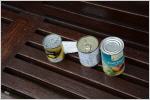 Nicht schlecht staunte ich, als ich auf einer Sitzbank in Dundee mehrere Konservendosen sah. Es hatte einen Zettel dabei mit der Notiz "Küchenschränke entrümpelt - bedienen Sie sich!". Die Auswahl bestand aus süssem Mais, Mandarinenschnitze im Mandarinensaft und eine Art Fruchtsalat. Hoffentlich haben die Konserven bald einen neuen Besitzer gefunden. Einfach mit dem Ablaufdatum darf man es nicht zu genau nehmen, denn die Mandarinenschnitze waren auf 2012 datiert, und der Fruchtsalat hätte bis im Febraur 2013 gegessen sein sollen.