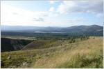 Auf der Landkarte waren mehrere Aussichtspunkte mit Blick auf dieses Gebirge vermerkt, aber entweder gab es keine Möglichkeit anzuhalten oder die Sicht war durch Bäume versperrt. Nach längerer Suche fand ich in einer Waldlichtung eine Stelle, wo ich das Cairngorm Gebirge fotogrfieren konnte.