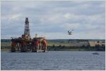 Nördlich von Inverness liegen die beiden Meeresarme Beauly Firth und Cromarty Firth, die es zu umfahren galt. Das Wetter zeigte sich sehr freundlich und warm, der Verkehr hielt sich hier in Grenzen. Am Cromarty Firth bei der Ortschaft Alness stand gerade eine Ölförderplattform, die von der Nordsee hereingeholt worden war.