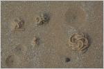 Östlich von Thurso gibt es ein paar schöne Strände, die natürlich nicht zum Baden genutzt werden. Auf dem glatten Sand waren viele "Vermicelles" zu sehen, deren Entstehung ich mir bis heute nicht erklären kann.